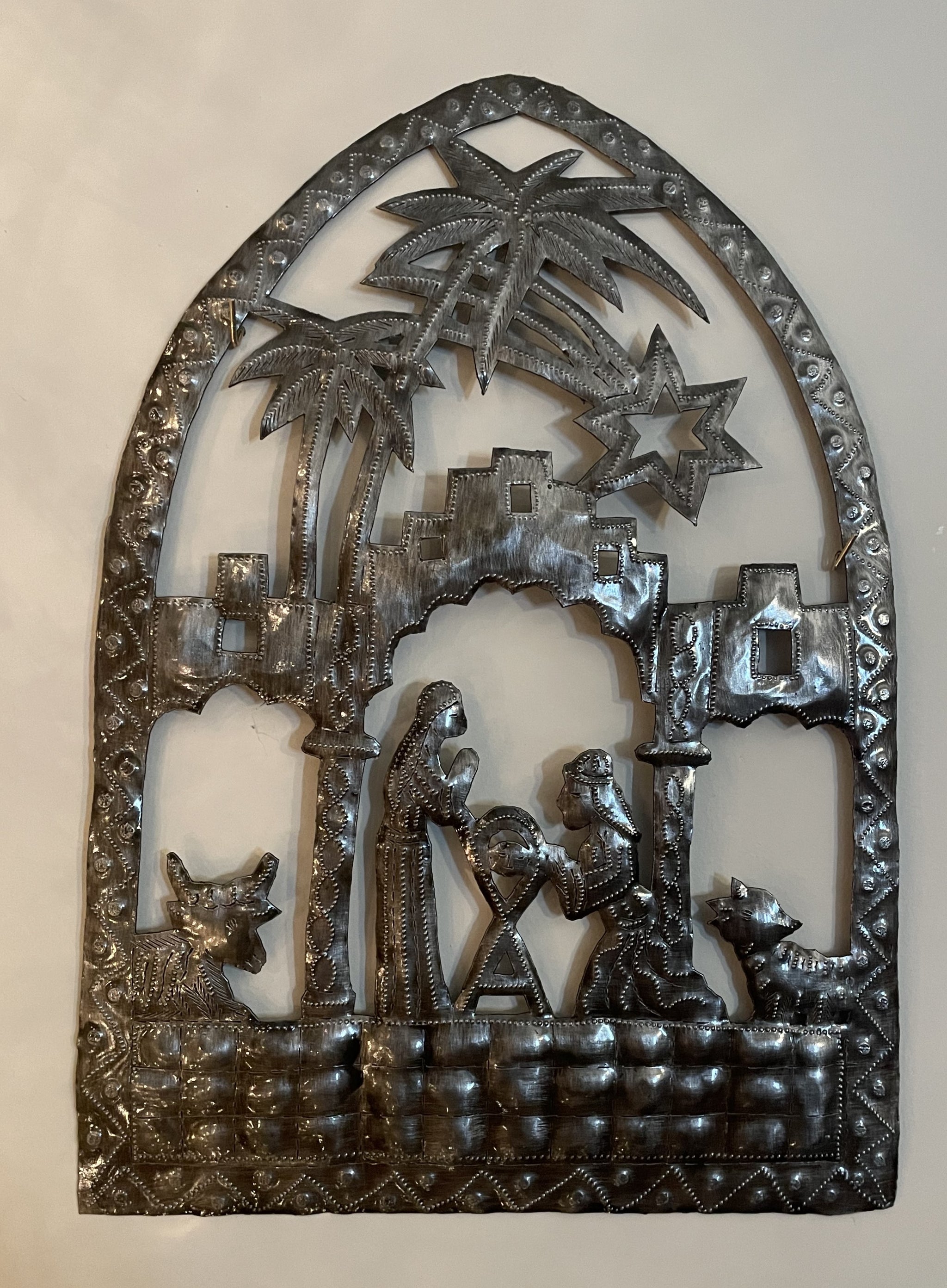 Celebrate the heart of Christmas with this beautifully handcrafted Bethlehem Nativity Scene, made in Haiti from recycled 55-gallon steel drums. Skilled artisans cut, shape, and chisel every detail by hand, transforming discarded metal into meaningful, faith-filled art.